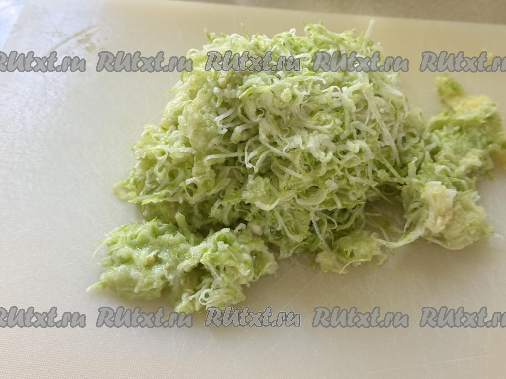 350 грамм подготовленного кабачка натереть на мелкой тёрке.