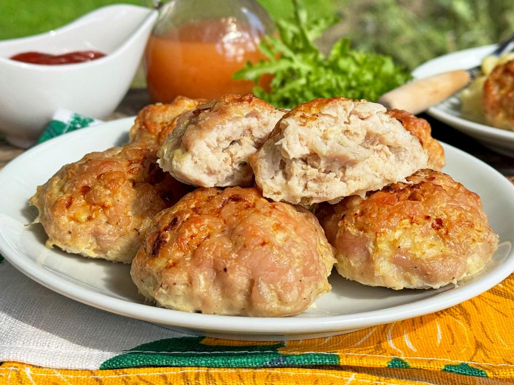 При подаче эти вкусные, пышные котлетки можно дополнить гарниром, либо свежими овощами и соусом.