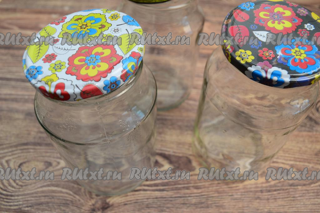 Первым делом нужно простерилизовать банки (я взяла 3 банки объёмом по 1 литру) и прокипятить крышки.