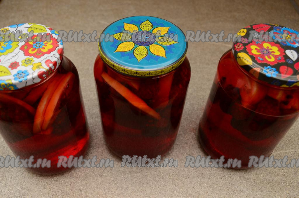 Сразу же закрутить (или закатать) банки с ежевично-яблочным компотом крышками. Перевернуть банки кверху дном, накрыть одеялом и оставить в таком положении до полного остывания, ну а затем переставить на хранение до зимы в тёмное, прохладное место (например, в подвал, кладовку или погреб). Хранить этот компот можно не более года.