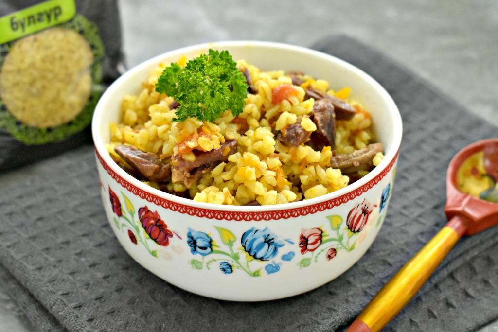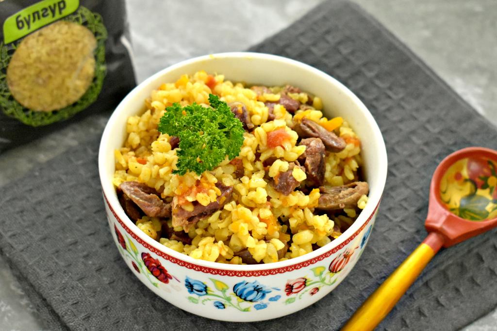 Рассыпчатый булгур вместе с сочными, мягкими куриными сердечками раскладываем из чаши мультиварки по тарелкам и в горячем виде подаём к столу. Сытно и вкусно, попробуйте!