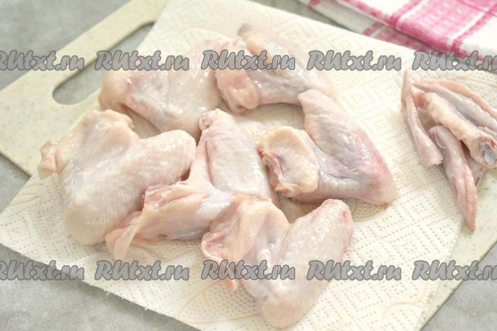Куриные крылышки моем. Отрезаем крайнюю фалангу от каждого крыла, в этой части крылышек практически нет мяса, поэтому готовить эти части крыльев мы не будем.