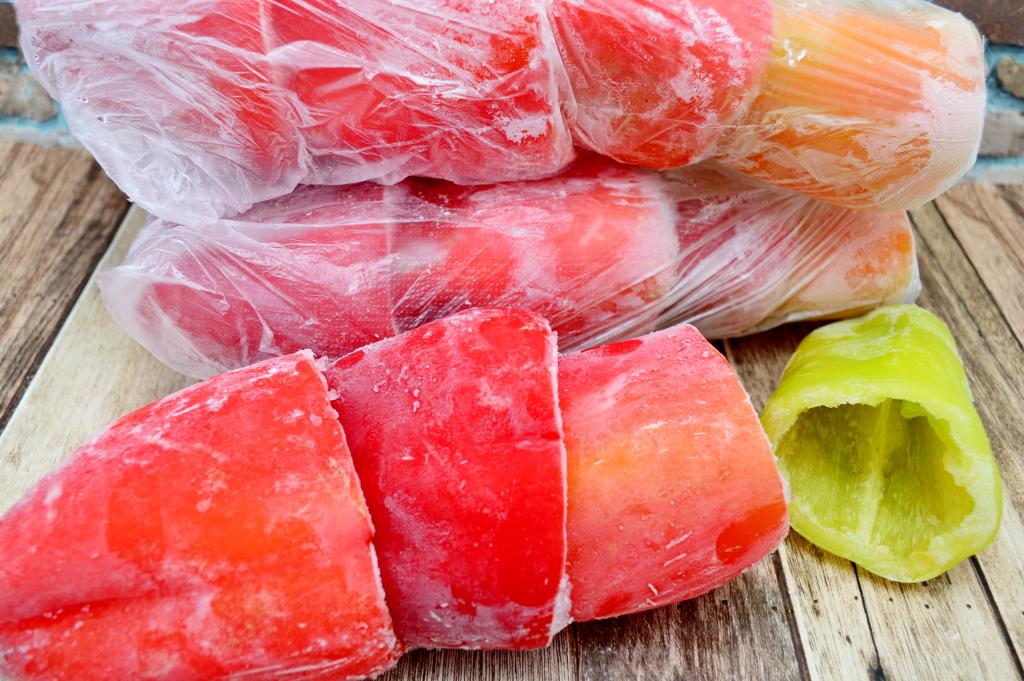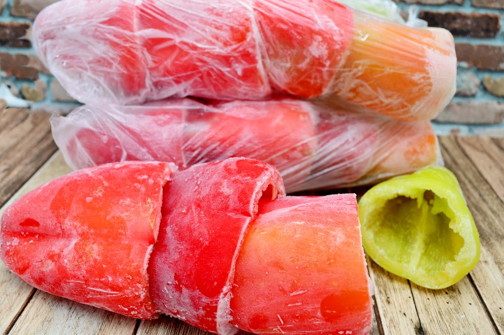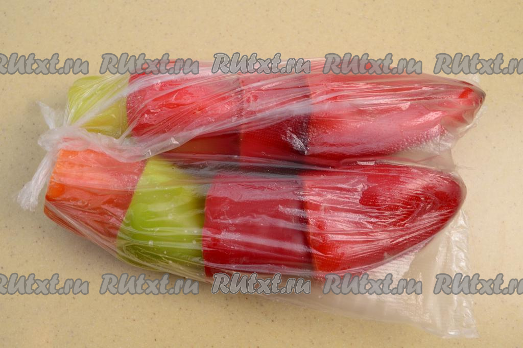 Все пакеты с подготовленными для фаршировки болгарскими перцами завязать и отправить в морозилку на хранение.