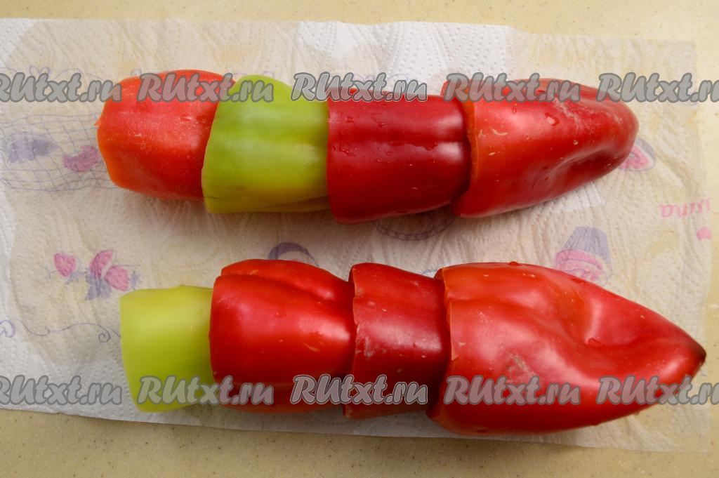 Затем сформированные пирамидки перцев выложить на бумажные полотенца, чтобы они хорошо обсохли.