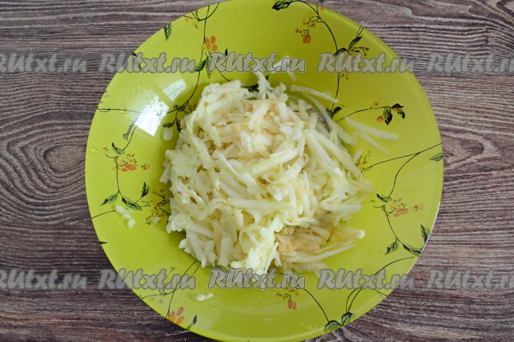 Яблоко очистить от кожуры, натереть на крупной тёрке, стараясь не задевать семенную коробочку. Всего у меня получилось 150 грамм натёртого яблока.