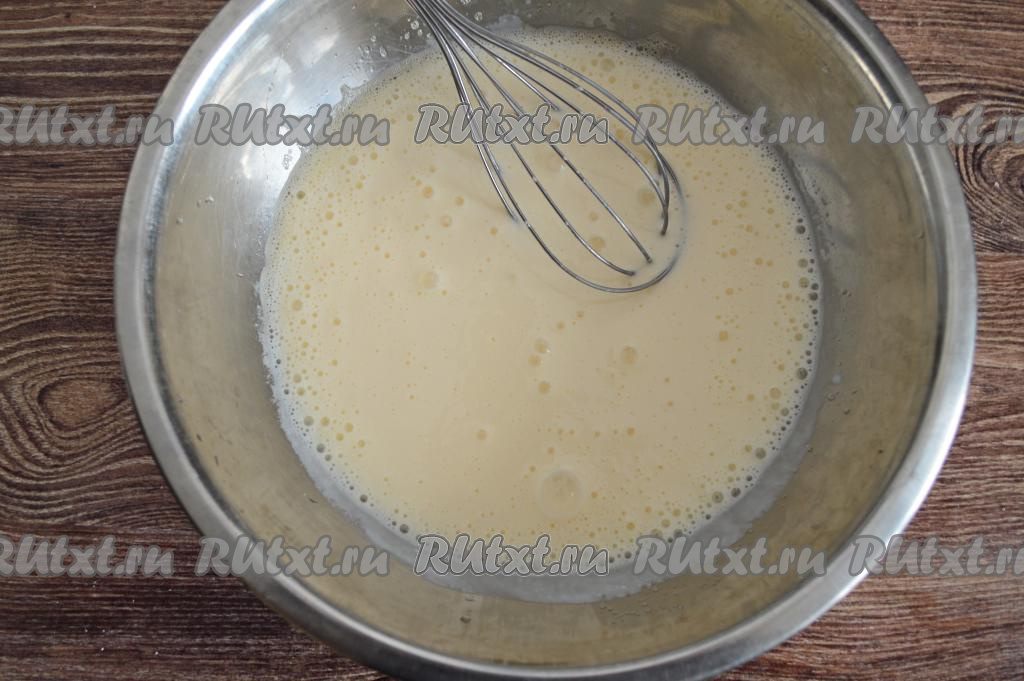 Венчиком взбить яйца с сахаром в течение 2-3 минут (до растворения сахара).