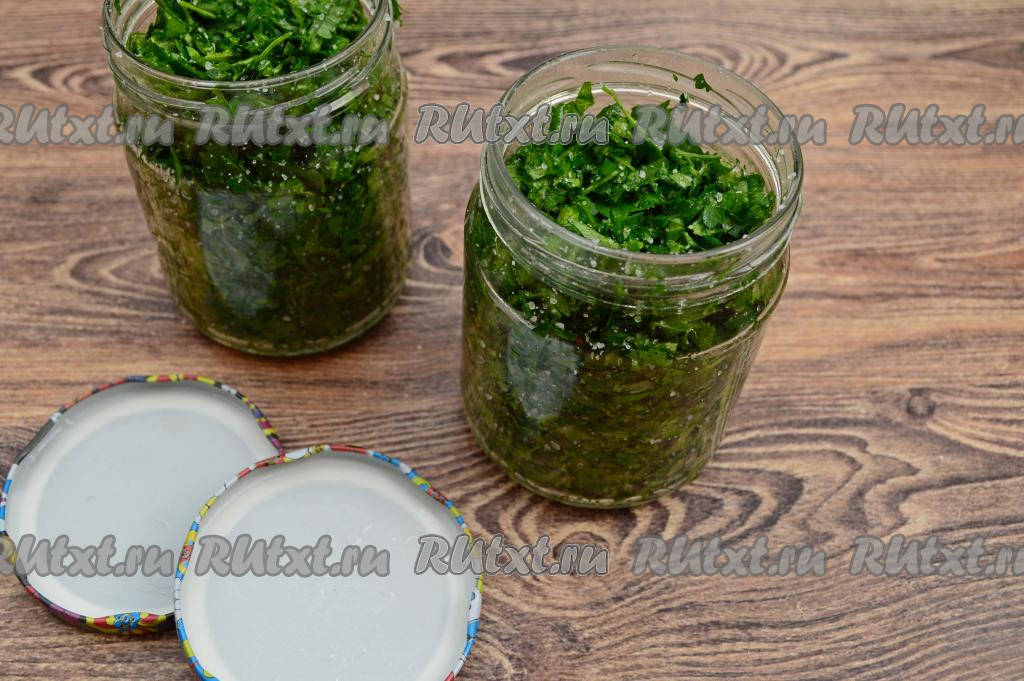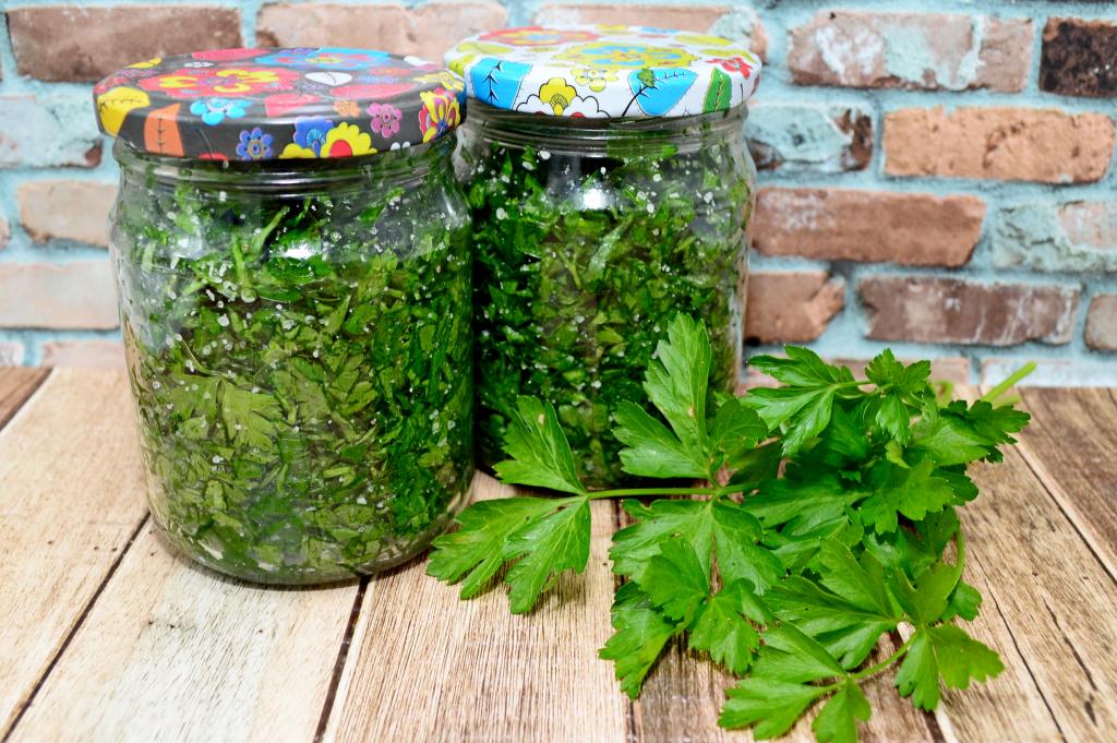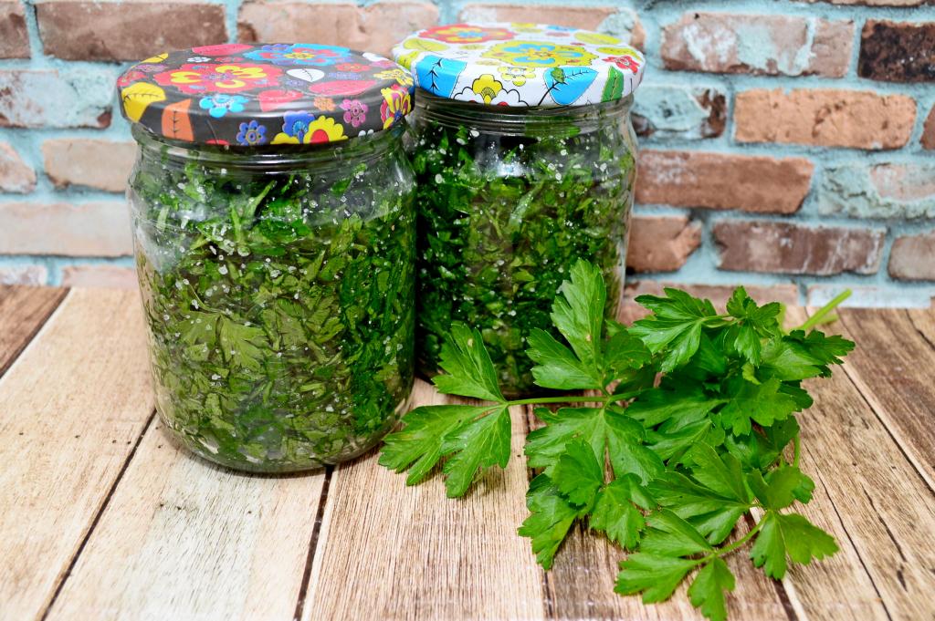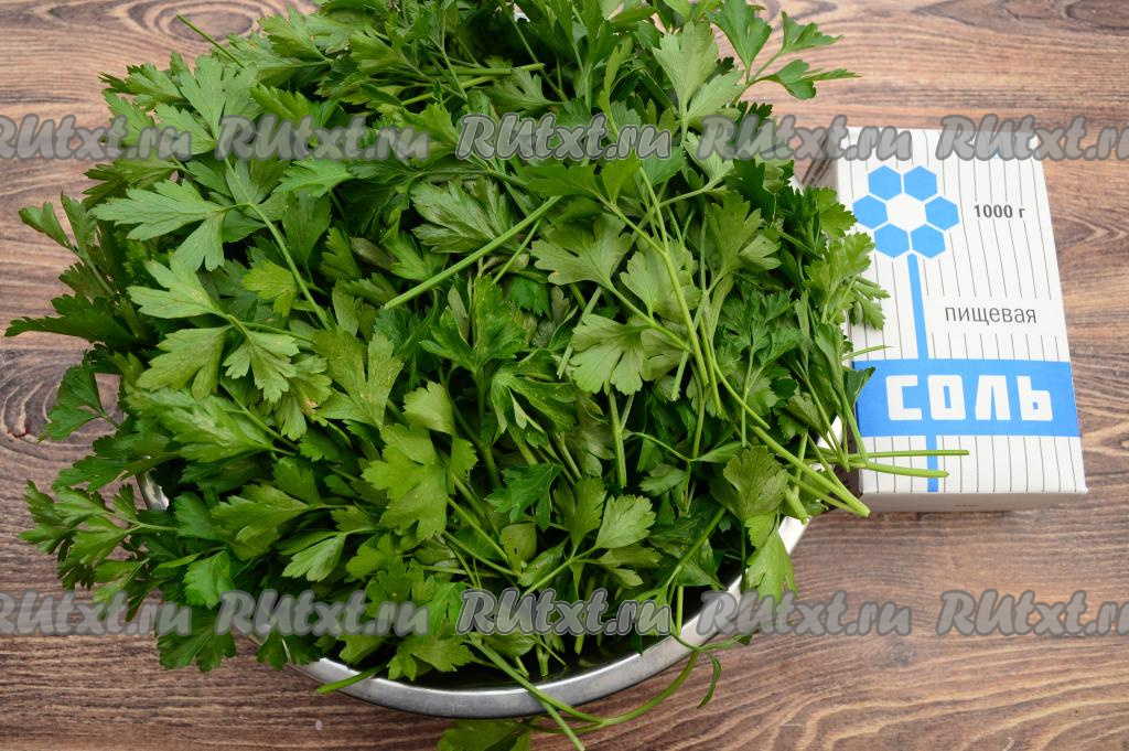 Ароматная, полезная, яркая свежая зелень своим вкусом украшает любые блюда. В наше время свежую зелень можно купить круглый год. Но покупная зелень не всегда бывает достаточно ароматной, да и вкусной. Поэтому я стараюсь заготавливать различную зелень на зиму. В этот раз расскажу, как я заготавливаю петрушку с солью в банке на зиму. Хранить такую заготовку нужно в холодильнике. Благодаря соли, зелень долго остаётся свежей. Такую петрушку можно класть в супы, рагу, добавлять в мясной фарш или использовать на своё усмотрения, правда, нужно обязательно учитывать, что зелень солёная. Уверена, такая заготовка, будет приятной добавкой к вашему меню!