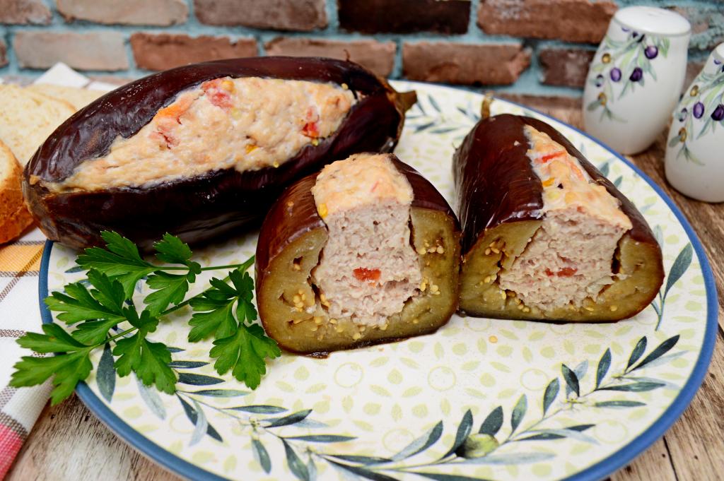 Вот как битый баклажан выглядит в разрезе. Сочетание сочного фарша и нежной мякоти баклажана делает это блюдо очень вкусным.