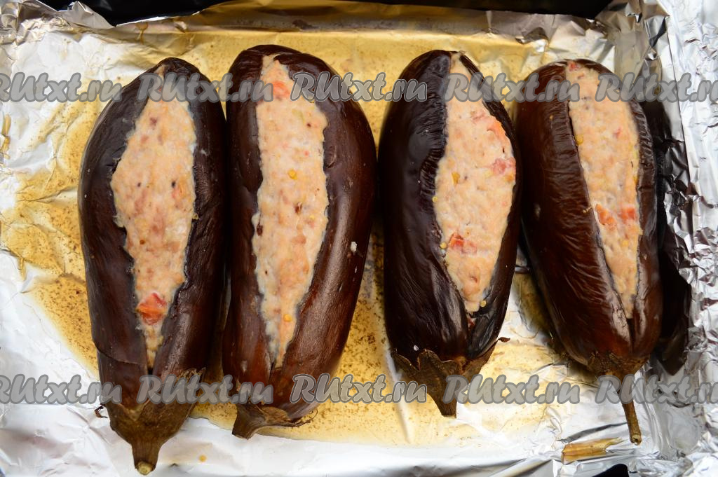 Битые баклажаны с фаршем запекать в разогретой до 180 градусов духовке 50 минут.