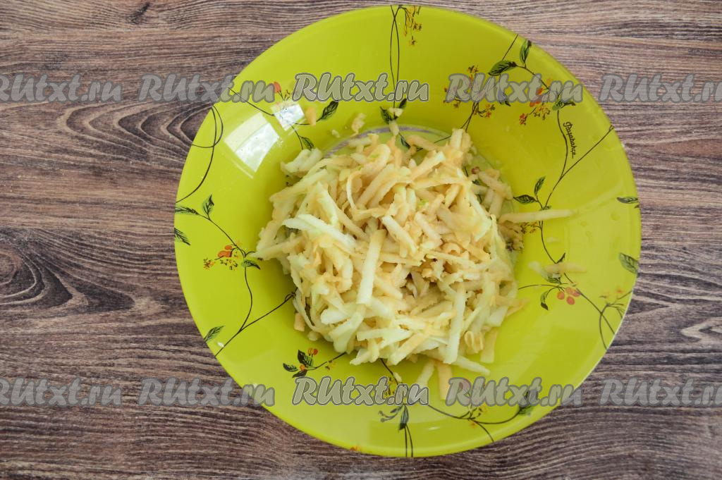 Яблоко очистить от кожуры, натереть на крупной тёрке, стараясь не задеть семенную коробочку.