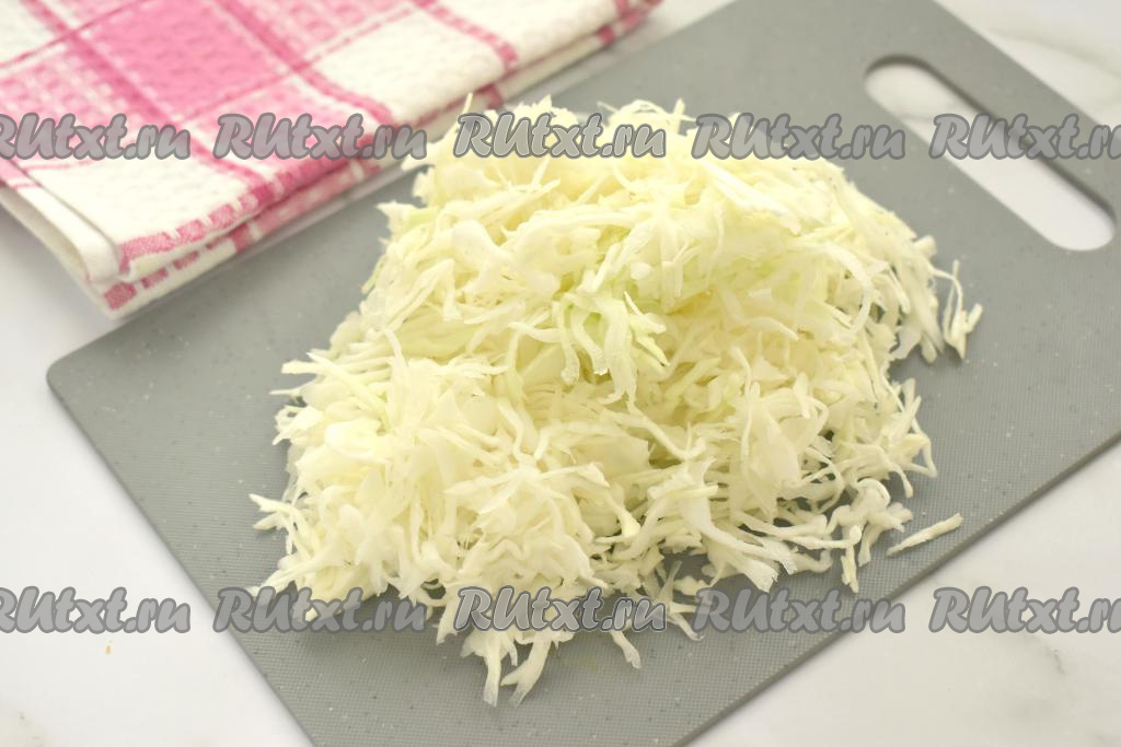 Пока закипаем бульон, вымытую капусту нарезаем на тонкие полоски.