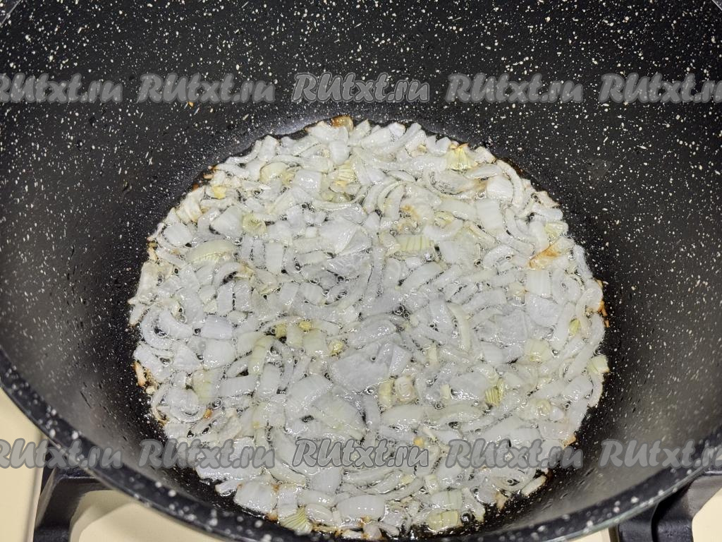 Обжарить лук до мягкости (в течение 4-5 минут), периодически перемешивая, на среднем огне.