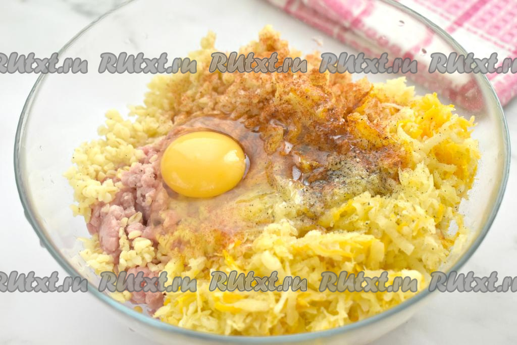 Тщательно перемешиваем фарш с булгуром, овощами и яйцом.