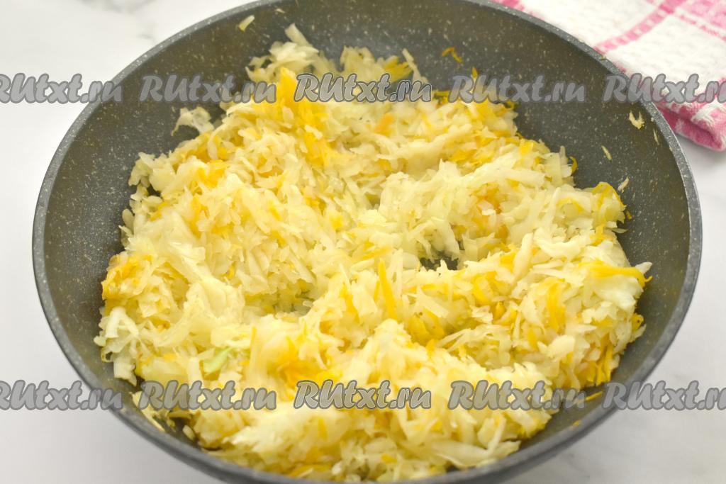 Капусту, обжаренную с морковкой и луком, убираем с огня, даём остыть.