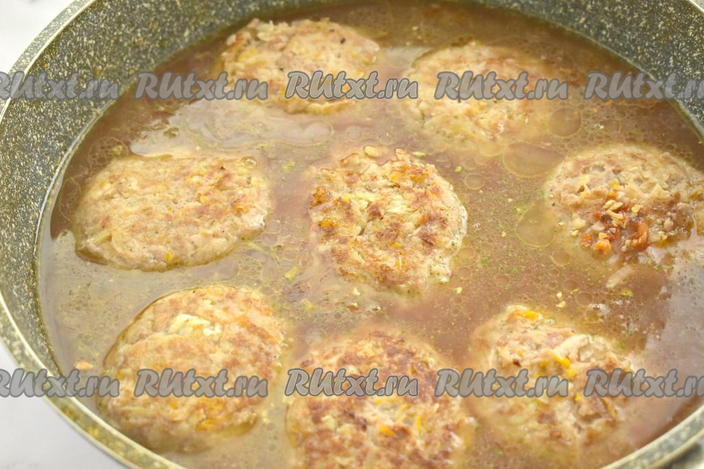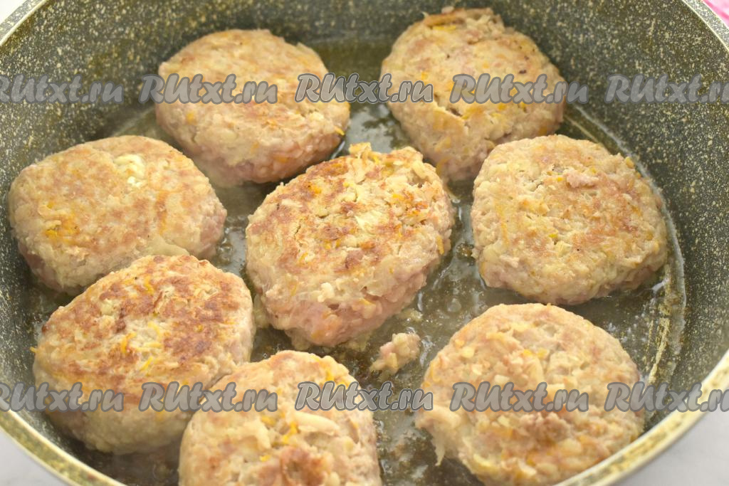 Из мясного фарша формируем ленивые голубцы в форме котлет (я сформировала 8 штук). Сформированные ленивые голубцы выкладываем в сковороду, разогретую с растительным маслом, обжариваем до подрумянивания с двух сторон (ориентировочно по 3 минуты с каждой стороны) на среднем огне.