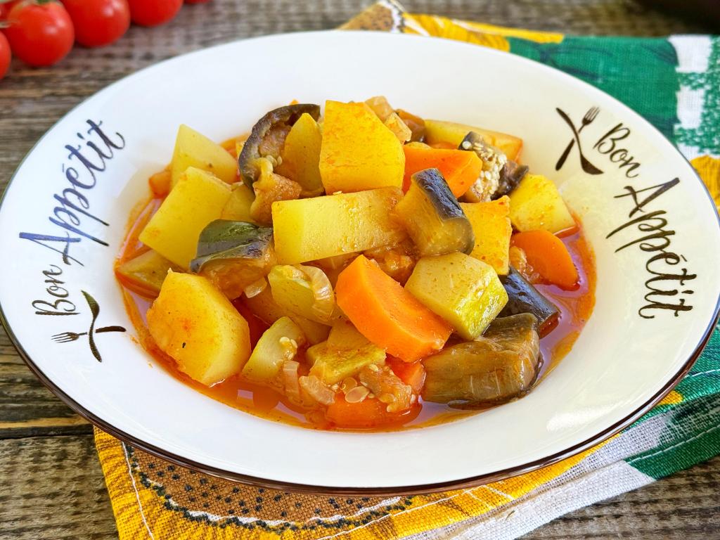 Предлагаю разнообразить повседневное меню и приготовить картошку, тушёную с кабачками и баклажанами. По сути, это один из вариантов овощного рагу. Блюдо получается сочным, аппетитным, насыщенным и очень вкусным. Эти овощи отлично подходят в качестве гарнира к мясу, птице. Ну а в дни Поста картошка, тушёная с кабачками и баклажанами, вполне может стать сытным, ароматным обедом или ужином. Просто и вкусно, обязательно приготовьте это овощное рагу для себя и своих близких!