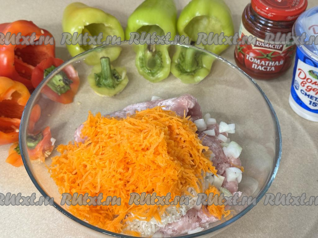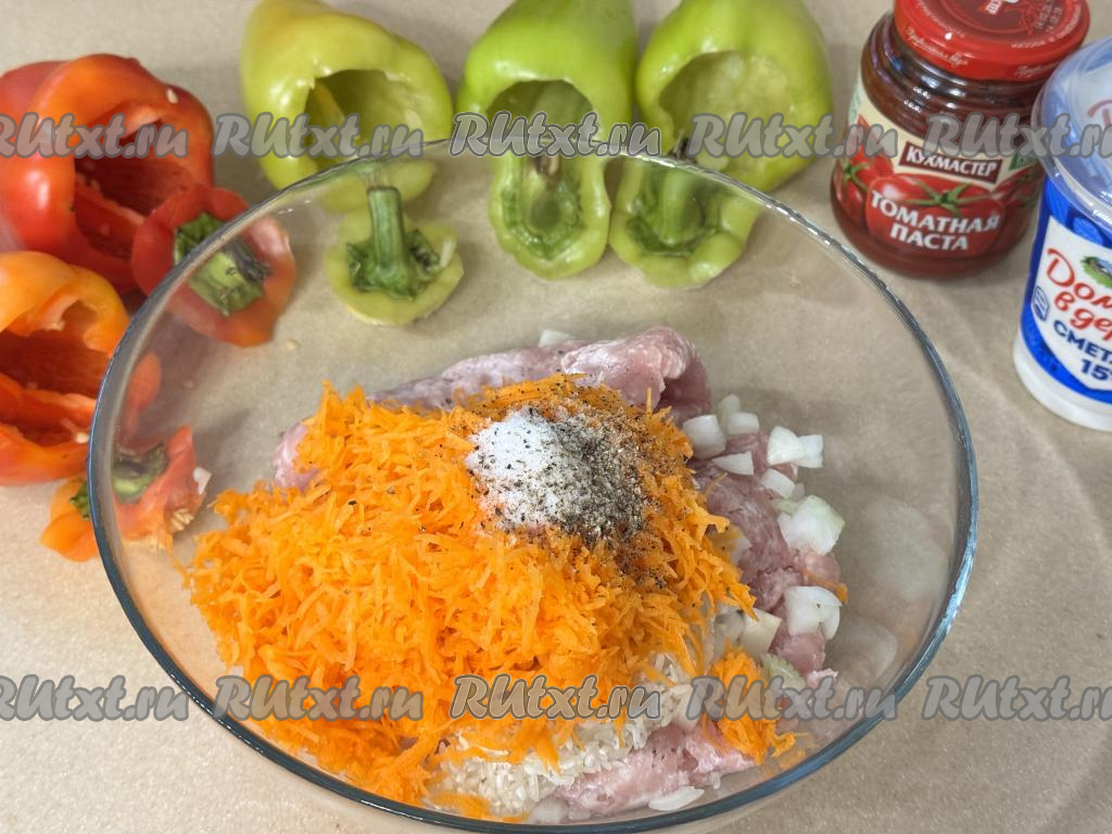 Хорошо перемешать содержимое миски и начинка для фарширования перцев готова.