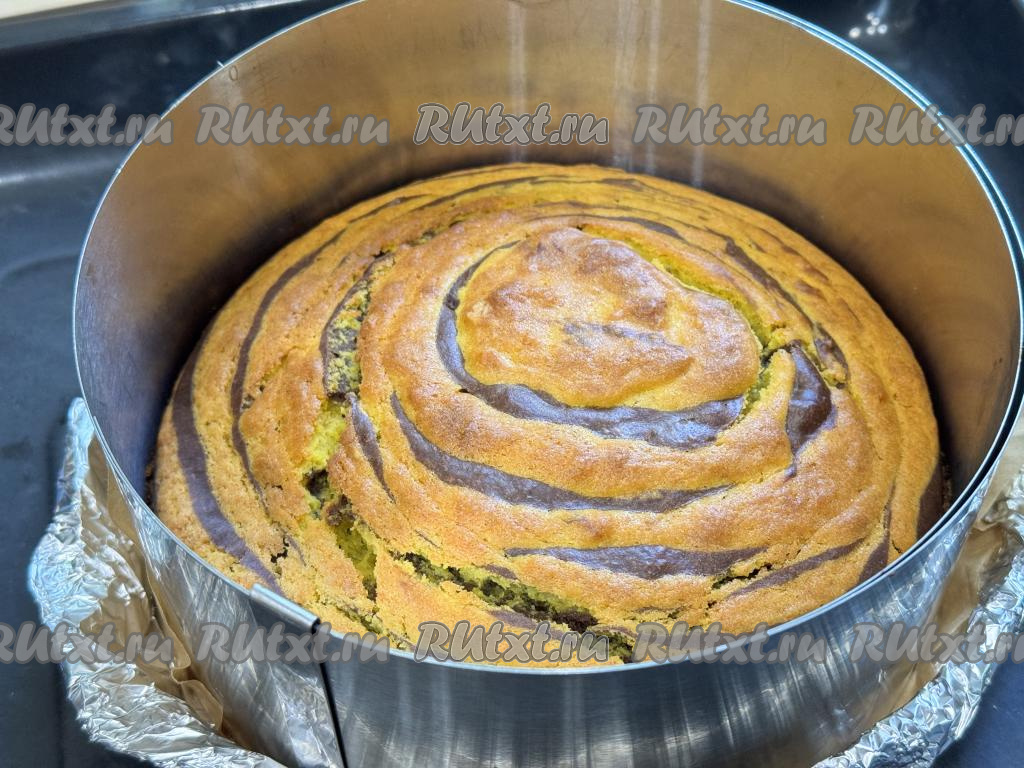 Таким образом, чередуя и используя постепенно всё тесто, сформировать весь пирог. Выпекать тыквенный пирог "Зебра" в духовке, разогретой до 190 градусов 40 минут.