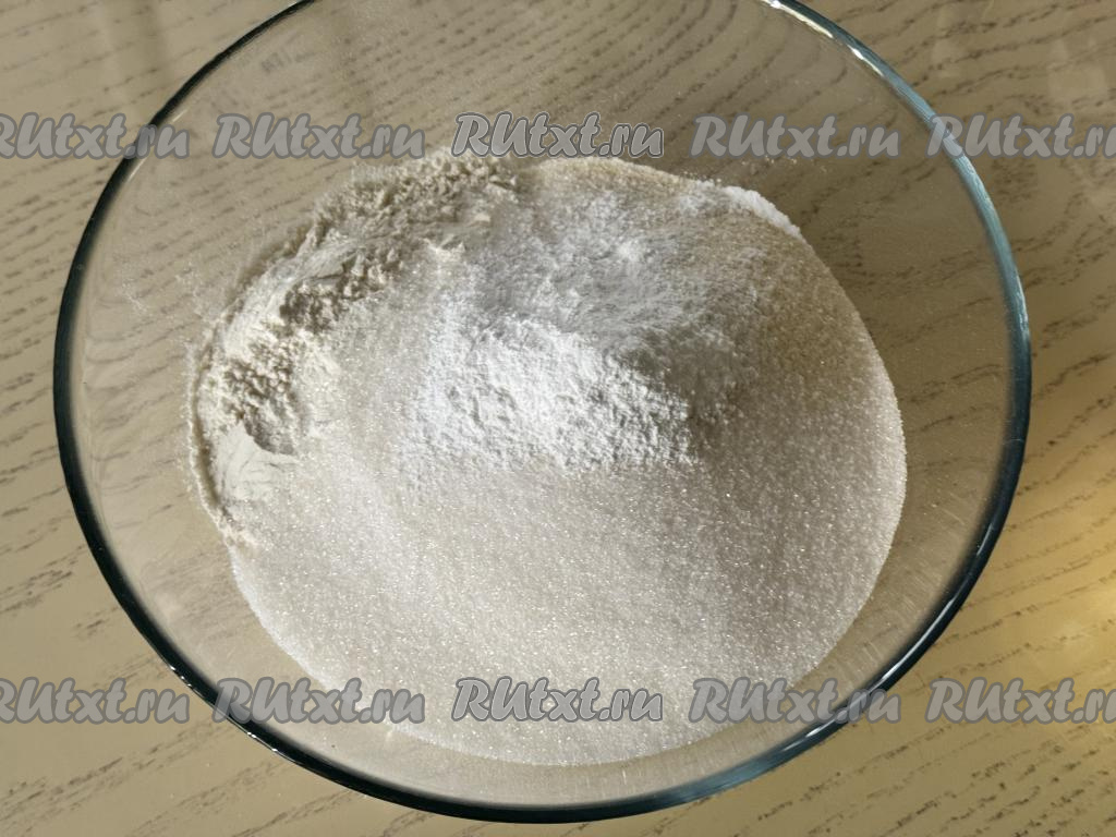 В миске соединить муку, манку, сахар и разрыхлитель.