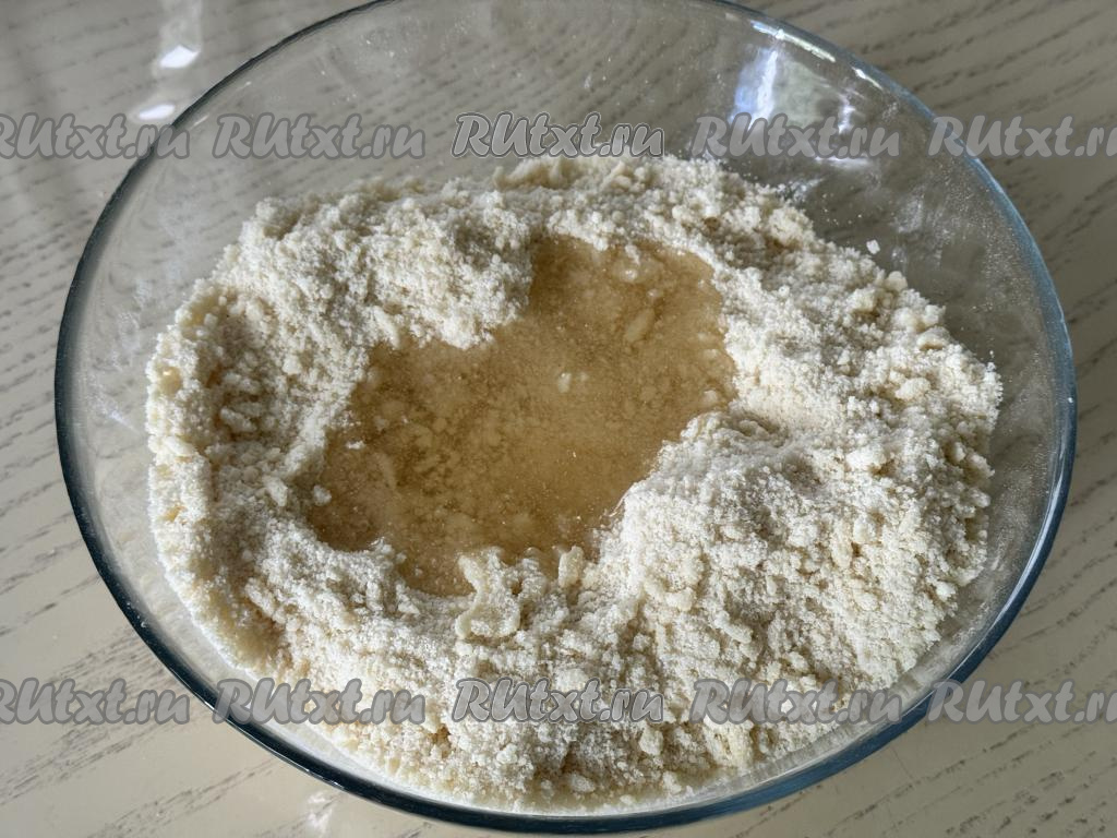 Перетереть массу руками до однородности, влить 5 столовых ложек растительного масла.