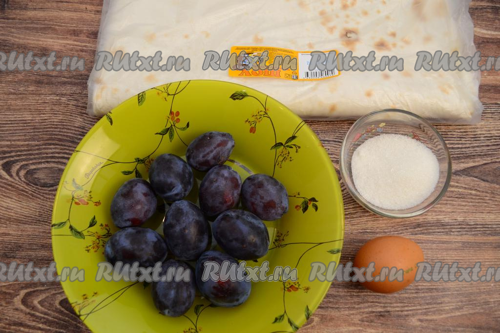 Штрудель из лаваша со сливами выпекать в разогретой до 180 градусов духовке в течение 20 минут (до золотистого цвета лаваша).