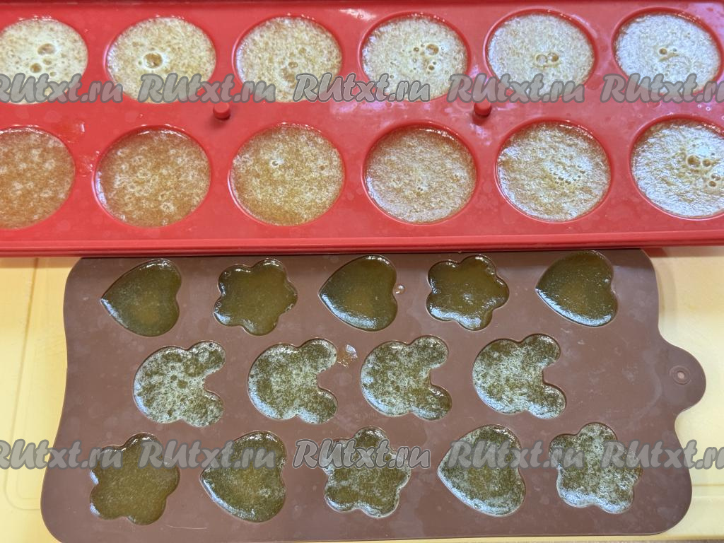 Разлить массу по силиконовым формочкам для конфет. Если нет таких формочек, можно вылить в одну силиконовую форму.