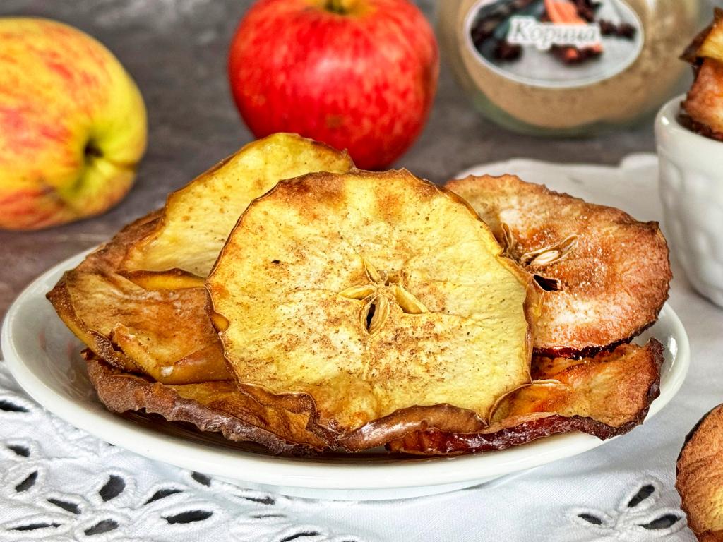 Дать яблочным чипсам остыть и подать к столу.