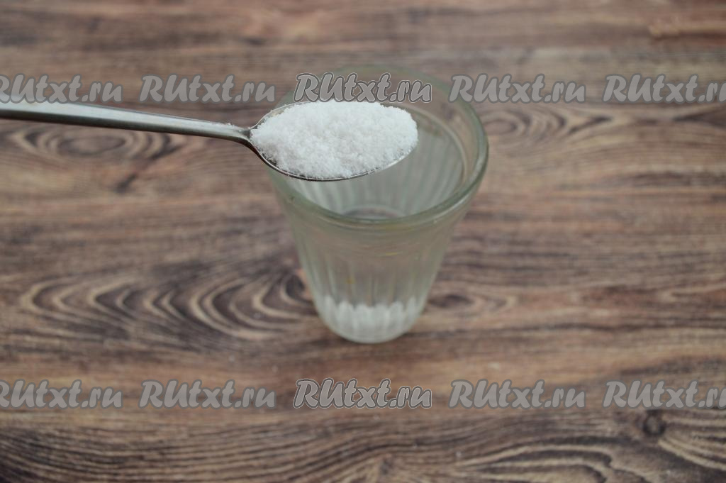 Воду на плите (или в микроволновке) подогреть до комнатной температуры. Всыпать в воду соль, перемешать до полного растворения кристаллов соли.