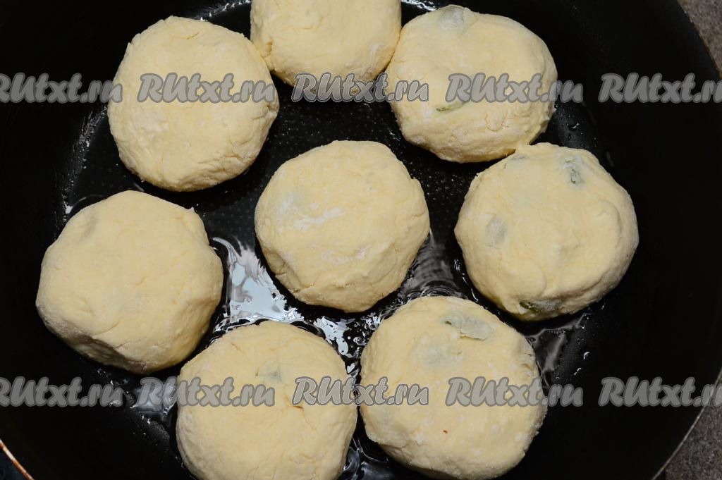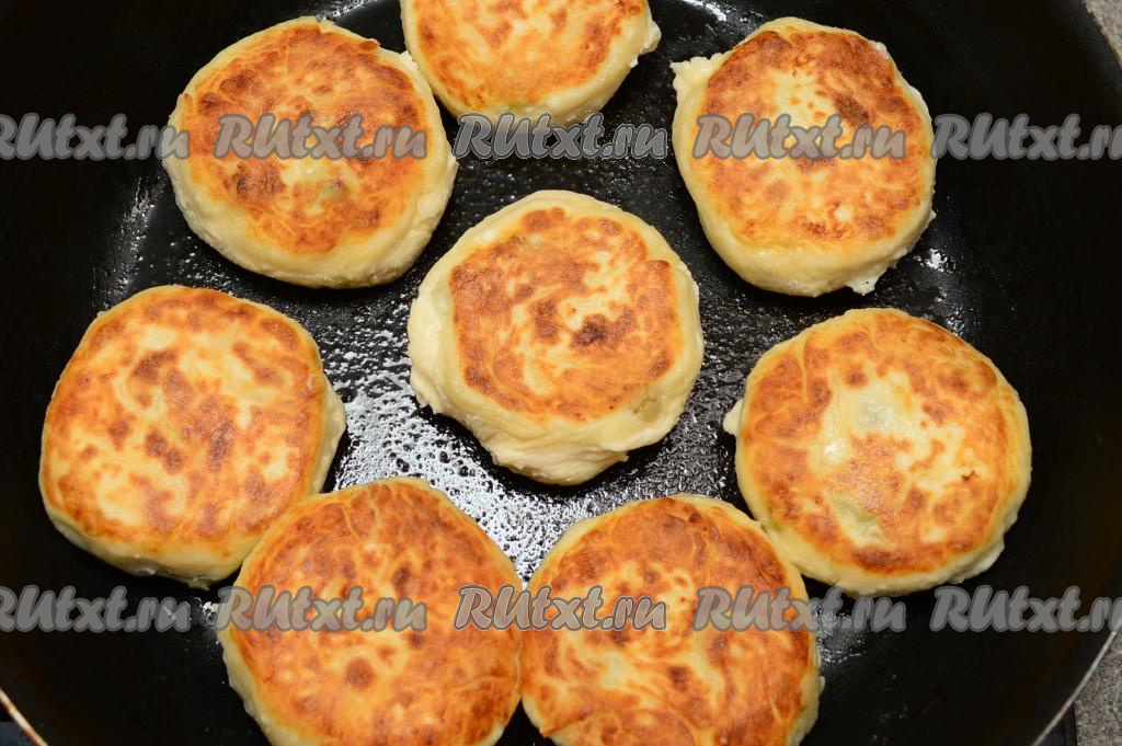 Затем перевернуть сырники и жарить их до подрумянивания с другой стороны (тоже ориентировочно в течение 2-3 минут). Когда обе стороны сырников будут подрумянены, ещё раз перевернуть сырники, накрыть сковороду крышкой, выключить огонь и дать им потомиться 5 минут.