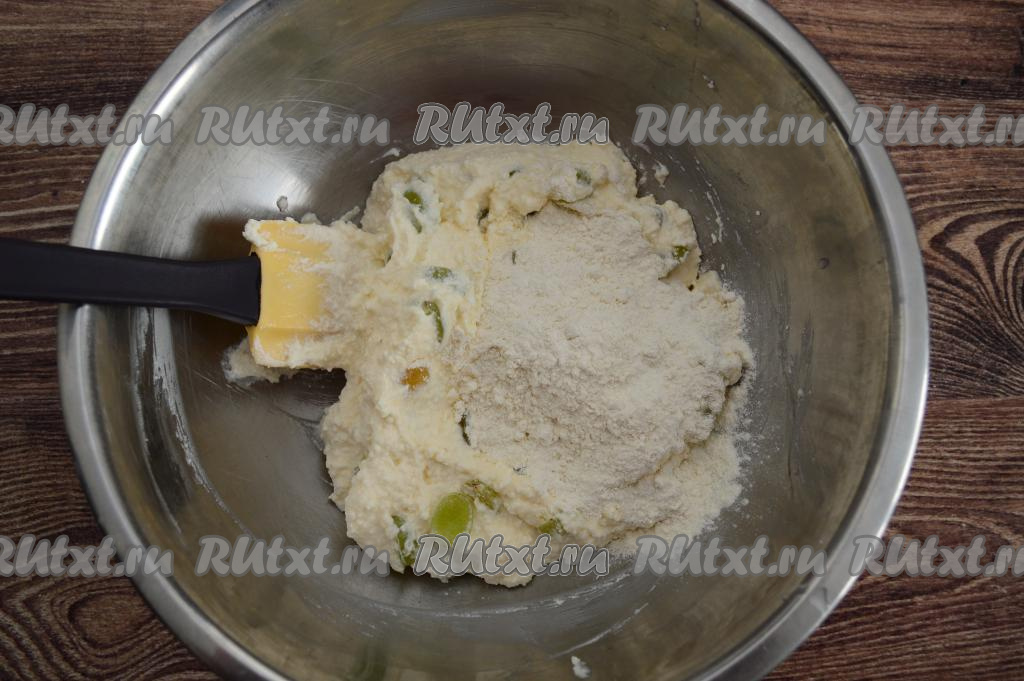 В итоге должно получиться комковатое, липкое творожно-виноградное тесто, из которого можно слепить округлый сырник, который будет хорошо держать форму.