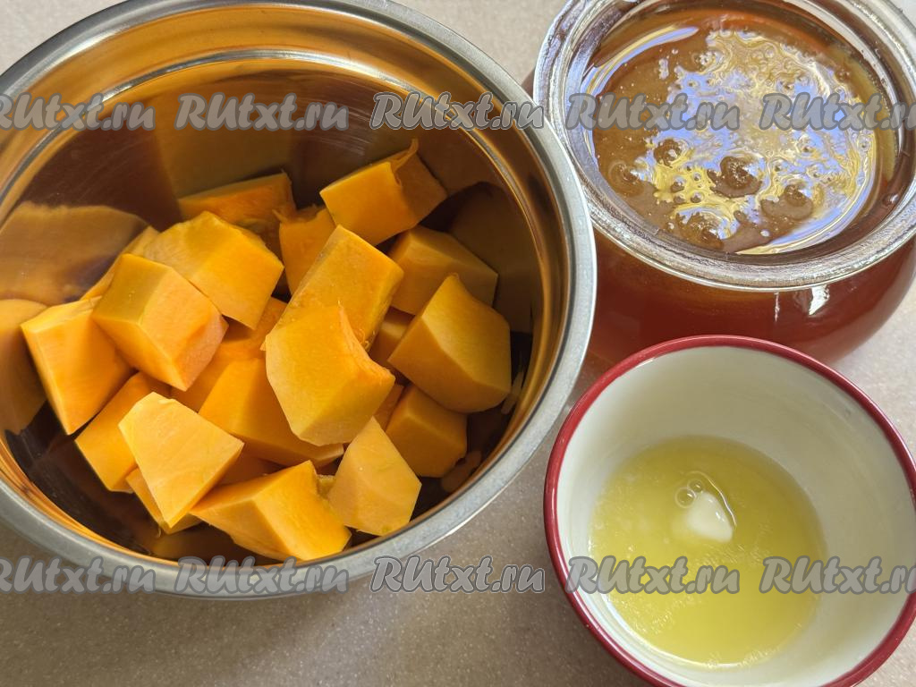Хорошо перемешать, покрывая кусочки тыквы маслом и мёдом со всех сторон.