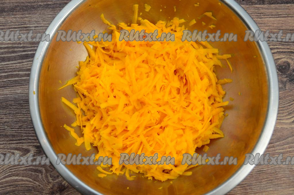 400 грамм тыквы, очищенной от кожуры и волокон с семечками, натереть на крупной тёрке.