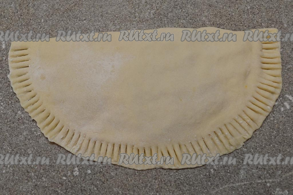Накрыть сторону с начинкой чистой стороной теста.