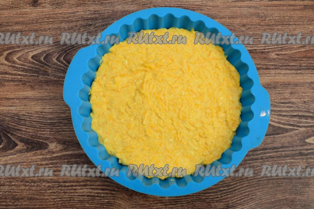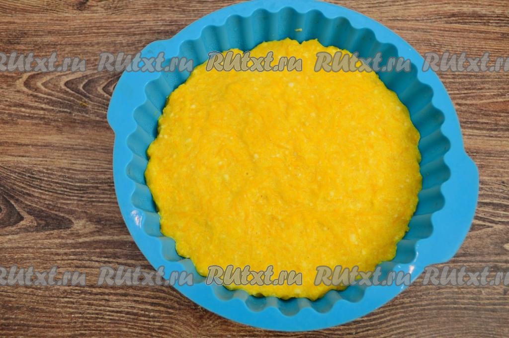 Я использовала круглую силиконовую форму диаметром 17 сантиметров, так как форма силиконовая, я её ничем не смазывала. Если у вас керамическая или стеклянная форма, тогда перед выкладыванием теста смажьте дно и бока формы растительным маслом.