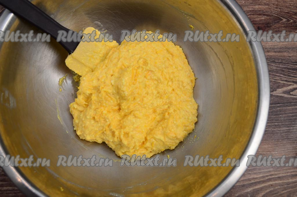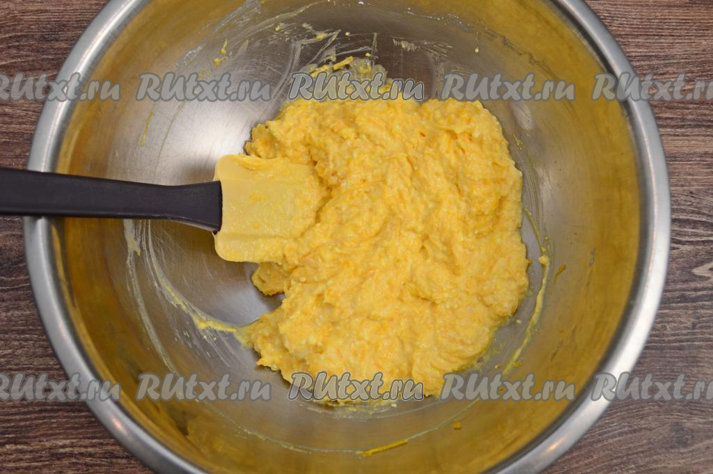 Перемешать творожно-тыквенную массу лопаткой до однородности.