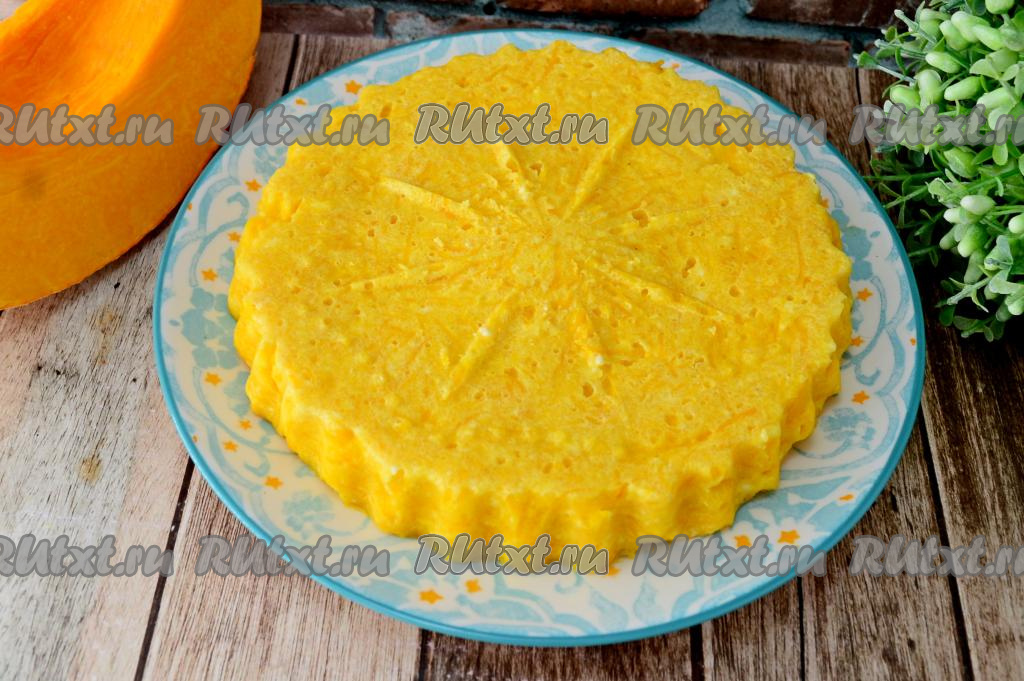 Готовить творожную запеканку с тыквой в микроволновке на максимальной мощности в течение 3-5 минут. Через 3 минуты можно проверять на готовность. Если поверхность запеканки не липнет к рукам, значит она готова.