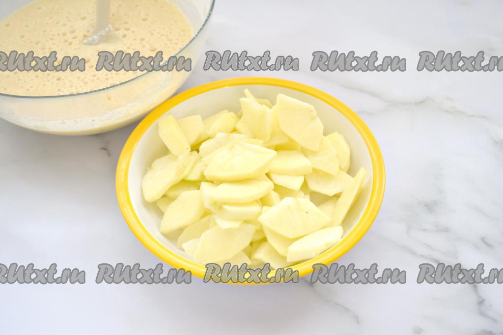 Очищаем яблоки от семян и кожуры. Нарезаем яблоки на тонкие ломтики.
