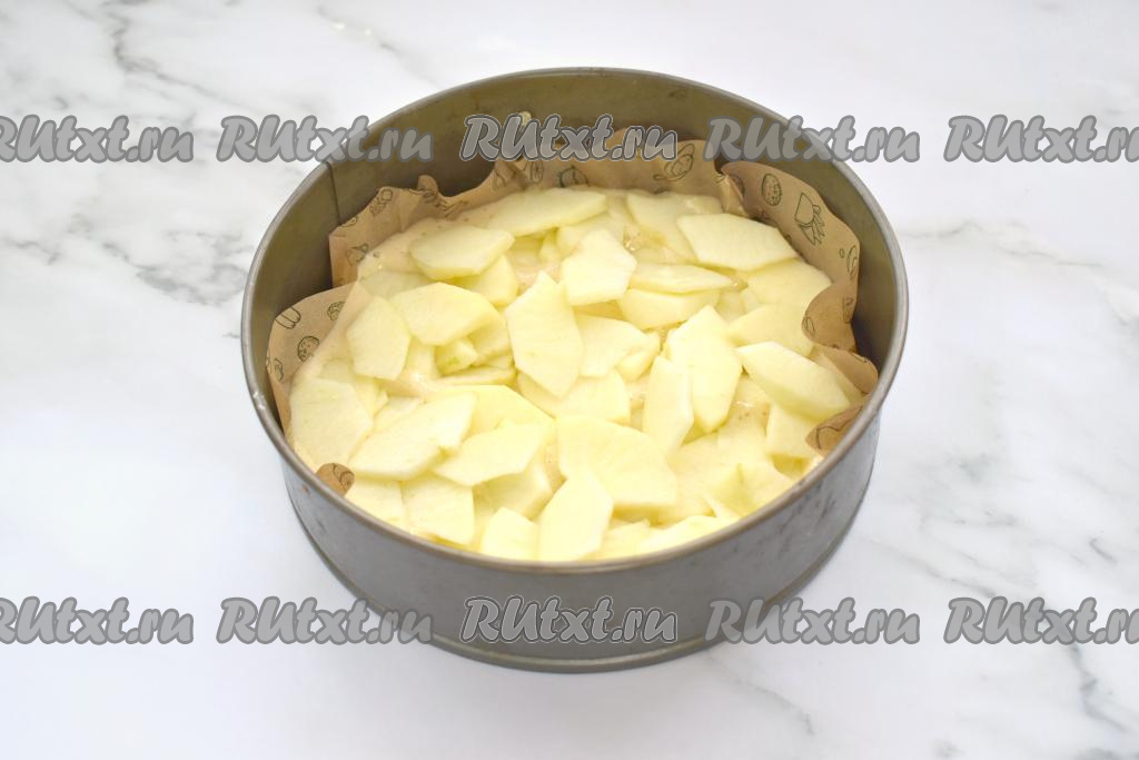 На тесто раскладываем ровным слоем нарезанные яблоки.