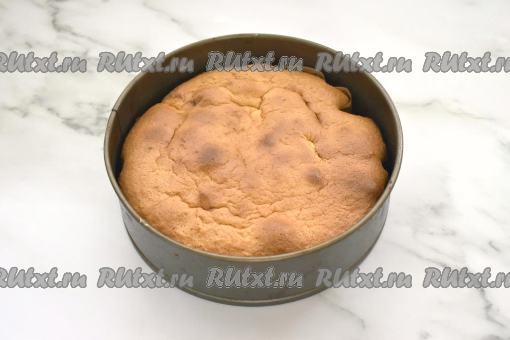 В глубокую миску (или в другую посуду), в которой удобно будет взбивать миксером, разбиваем яйца, всыпаем сахар, взбиваем на максимальных оборотах миксера минут 5 (в процессе взбивания яичная масса должна увеличиться в объёме и стать достаточно светлой).