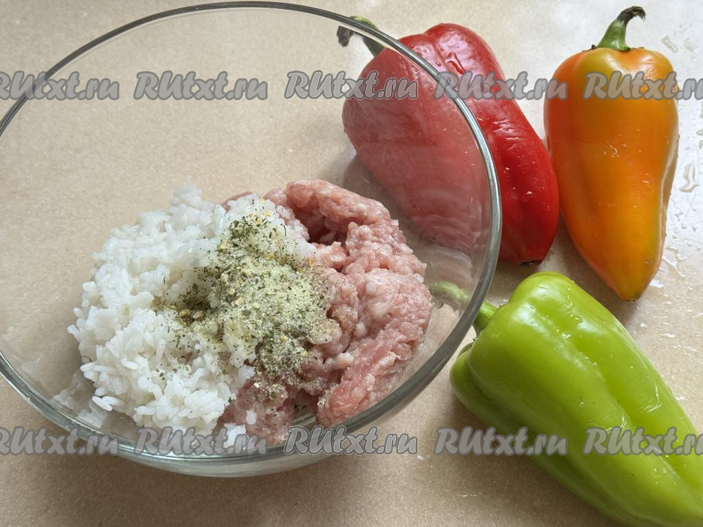 Тщательно перемешать фарш с рисом, специями и начинка для фарширования перцев готова.