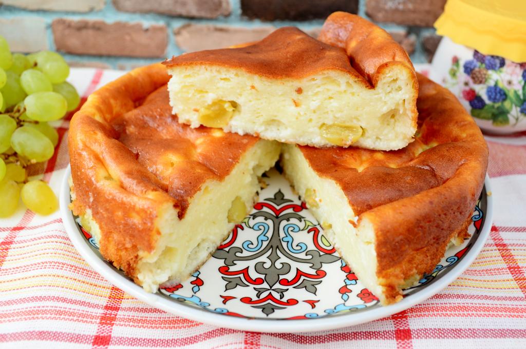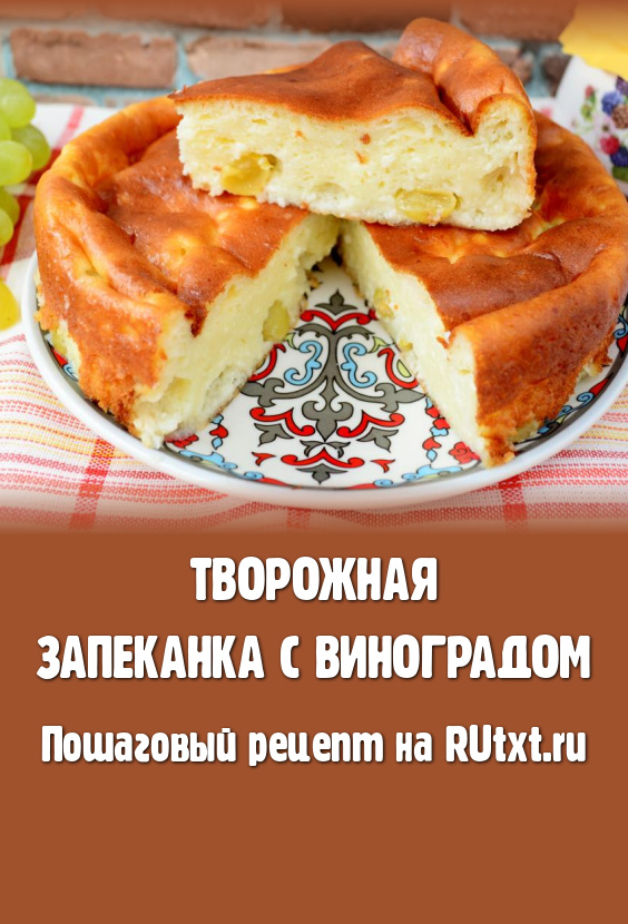 Я часто пеку для себя и своих близких творожные запеканки. В этот раз решила приготовить запеканку из творога с добавлением винограда. Выпечка получилась нежной, воздушной. Виноград придал ей приятную сочность и дополнительную сладость. Готовится творожная запеканка по этому рецепту с мукой, без добавления манки. Она хорошо держит форму, отлично режется на части. Приготовьте творожную запеканку с виноградом и оцените её нежный вкус!