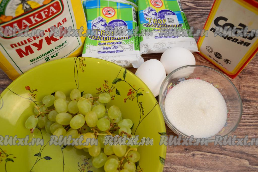Подготовить продукты. Виноград я советую брать без косточек. Творог лучше взять жирностью от 5% и выше.