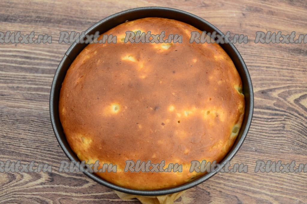 Запеканку остудить в форме в течение 5 минут, затем вынуть её из формы и дать немного остыть. Подавать к столу её можно и тёплой, и полностью остывшей.