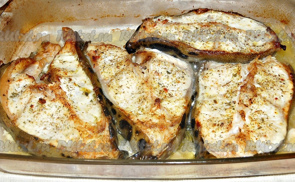 Через 30 минут зубатка будет готова. Вынимаем форму из духовки.