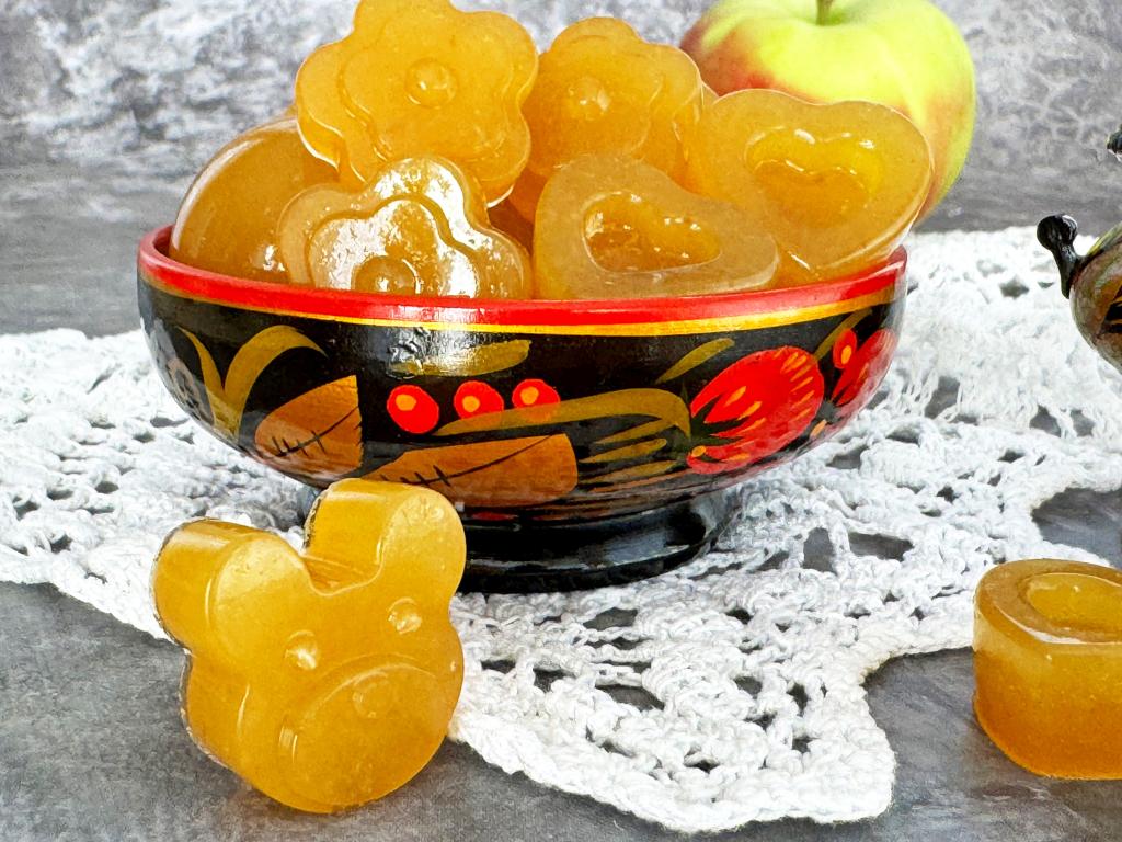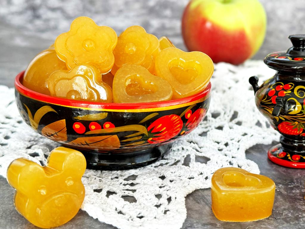 Очень вкусный, аппетитный, ароматный мармелад, приготовленный из яблок с желатином в домашних условиях, подать к чаю.