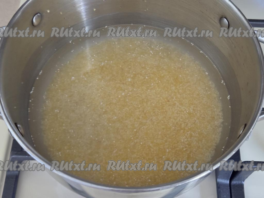 В кастрюлю с толстым дном выложить промытую крупу, добавить соль и 2 столовых ложки сахара.