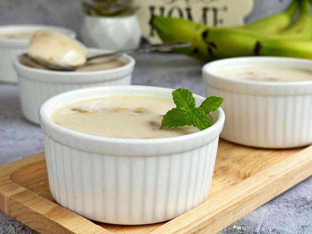 Застывший десерт достать из холодильника и можно наслаждаться нежным сливочным вкусом ряженки в сочетании с мягкими кусочками банана. Очень вкусно, попробуйте!