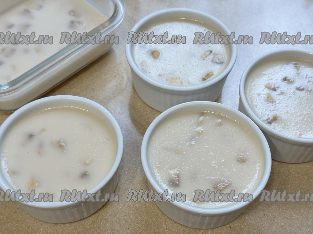Десерт, приготовленный из ряженки и банана с желатином, поставить в холодильник до полного застывания (минимум на 2 часа).
