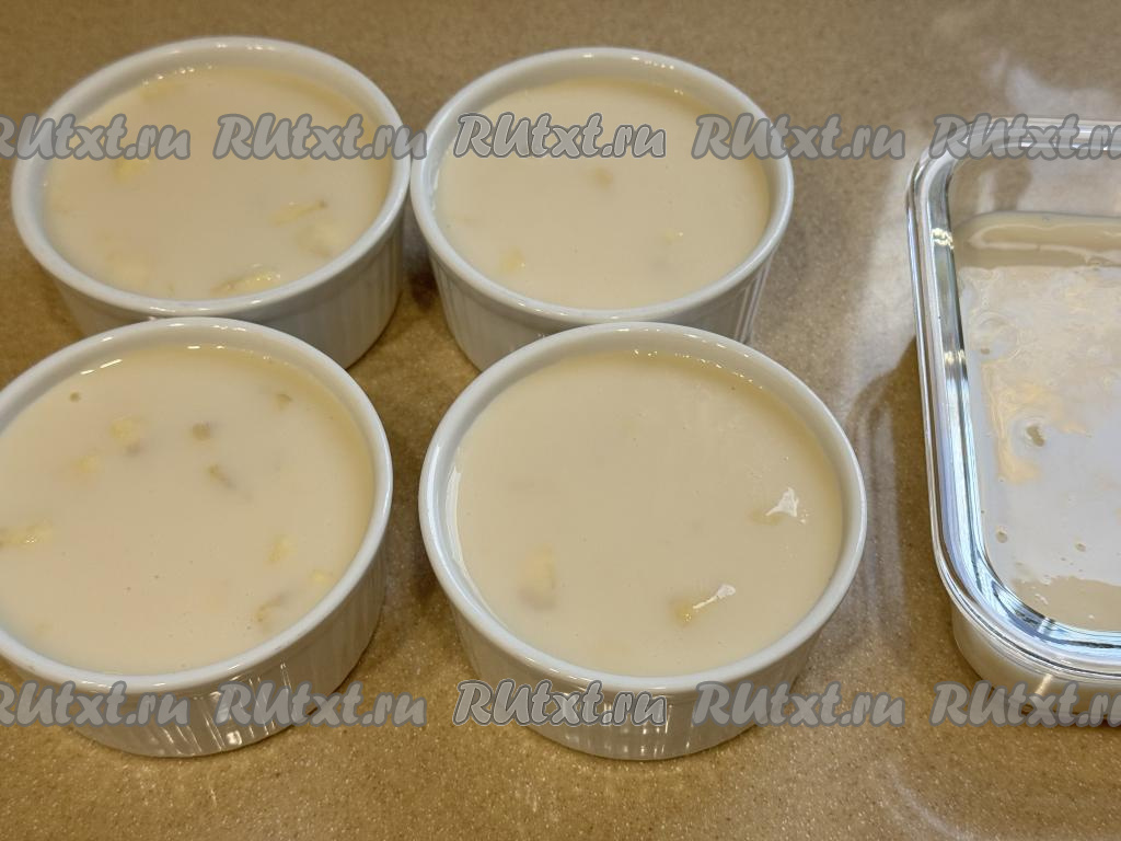 Разлить десерт по порционным формочкам, фужерам или креманкам.