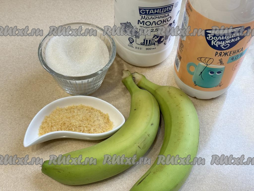 Подготовить продукты. Бананы можно взять как спелые, так и немного недозрелые. Ряженку и молоко можно взять любой жирности (я использовала молоко жирностью 2,5%, ряженку - жирностью 4%).